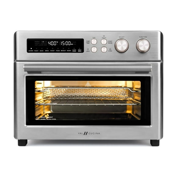 VAL CUCINA Freidora de aire con calefacción por infrarrojos, horno de convección extragrande para encimera 10 en 1, tostada de 6 rebanadas, charola para hornear esmaltada, fácil de limpiar con libroHorno Oster con Freidora de Aire de 35 Litros Plateado
