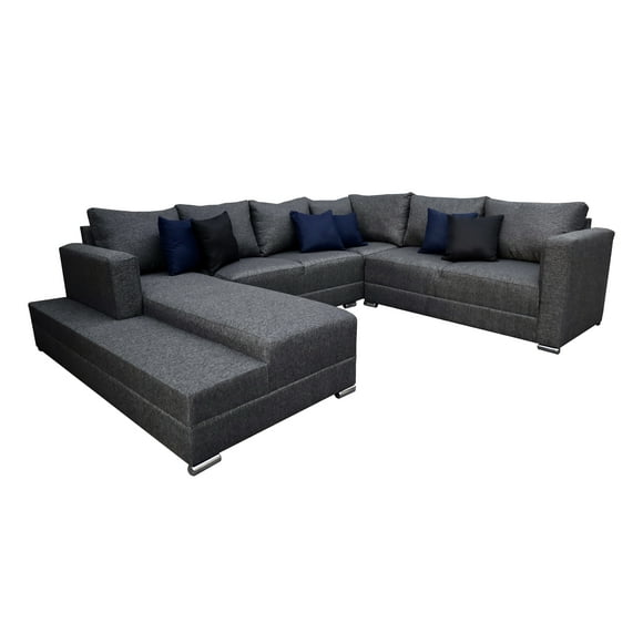 Sala Esquinera en U El Bazar Store Hera Gris Oxford 160x275x215 cm, 4 Salas en 1, Tela Lino nacional, Modular