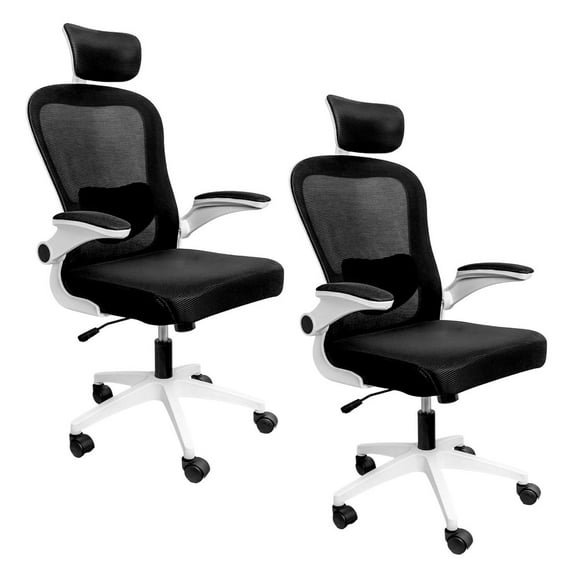 Set de 2 Sillas De Oficina Respaldo Alto negro Mediano1 funda para silla de escritorio para ordenador y oficina.