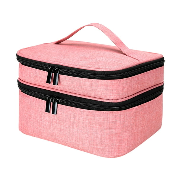 Bolsa organizadora de esmalte de uñas Seitruly doble capa fácil acceso almacenamiento estuche de transporte rosa