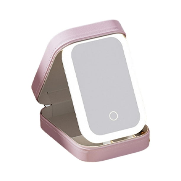 Estuche de maquillaje de viaje con espejo iluminado por LED, 3 colores brillantes Rosa