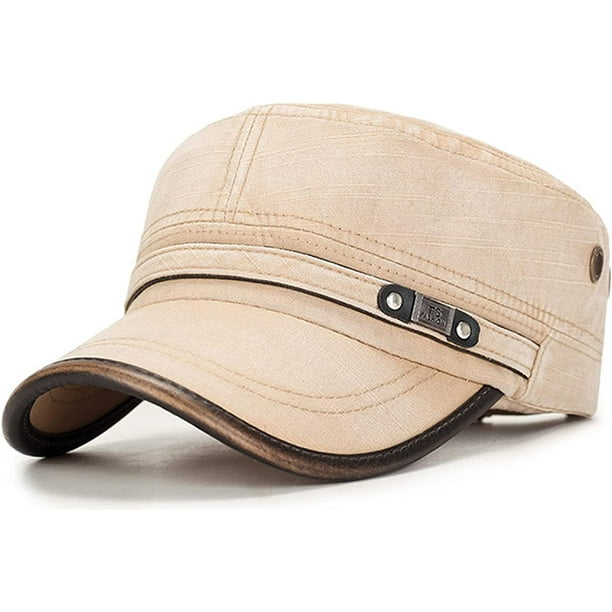 Gorra Plana, Gorra De Béisbol De Algodón, Gorra De Algodón Estilo Cadete Militar Clásico Liso Vintage, Gorras Clásicas con Hebilla De Metal Ajustable-Color Beige