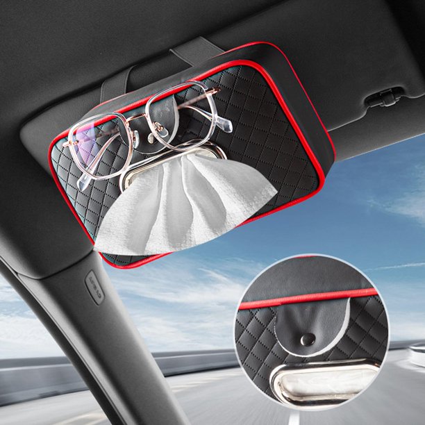 Soporte de pañuelos perfecl para reposabrazos de coche Caja de servilletas de piel sintética Negro y rojo