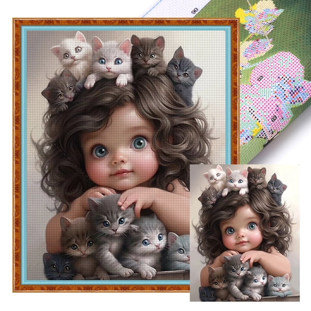Kit Punto Cruz Con Gato Y Niña Hilo Algodón Ecológico Bordado 11CT 40x50cmkit punto cruz con gato y nina hilo algodon ecologico bordado 11ct 40x50cm