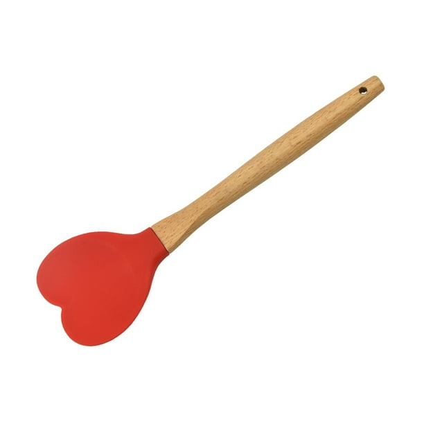 Espátula de silicona en forma de corazón, cuchara de cocina de silicona ligera y multifuncional. Rojo