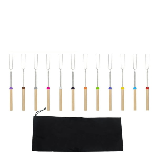 Palitos para asar malvaviscos, fogatas, brochetas para fogatas, tenedor extensible de 32 pulgadas de largo, palitos para ahumar con mango de madera