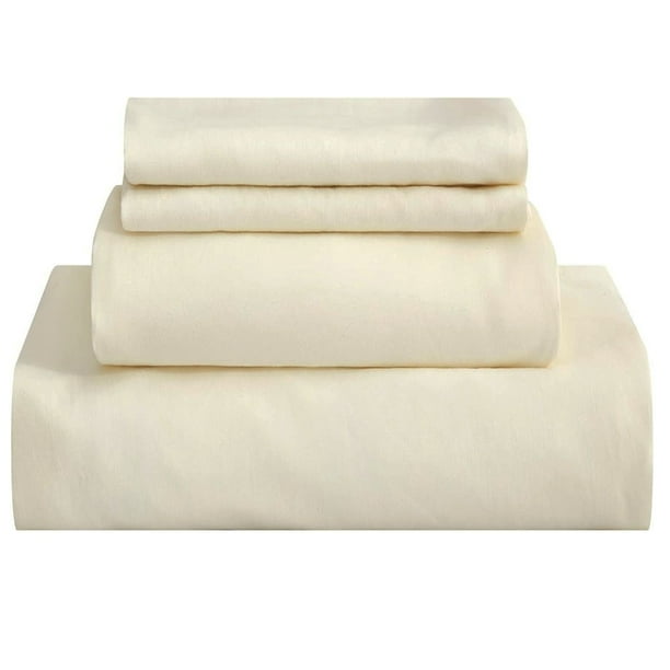 Juego de Sábanas Microfibra Suave Color Marfil Talla Matrimonial | Juego 4 Piezas Ajustables y Resistentes Kyuden Home