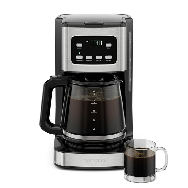 Chefman Cafetera programable de 12 tazas, cafetera eléctrica, apagado automático, pantalla digital con función de preparación automática, olla antigoteo, filtro reutilizable para molidos frescos