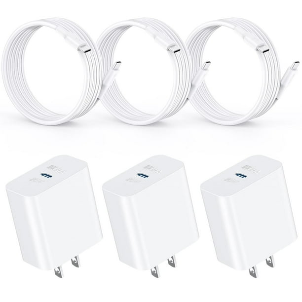 1 Hora Cargador USB C, 3-Pack PD 20W Cubo Cargador Tipo C Carga Rápida con Cable USB C a C 1M 3A, Cu