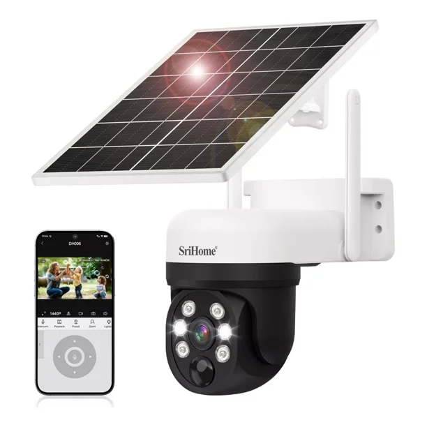 Srihome Solar Cámara Seguridad 4mp Hd Wifi Ptz Con Baterías Color Blanco