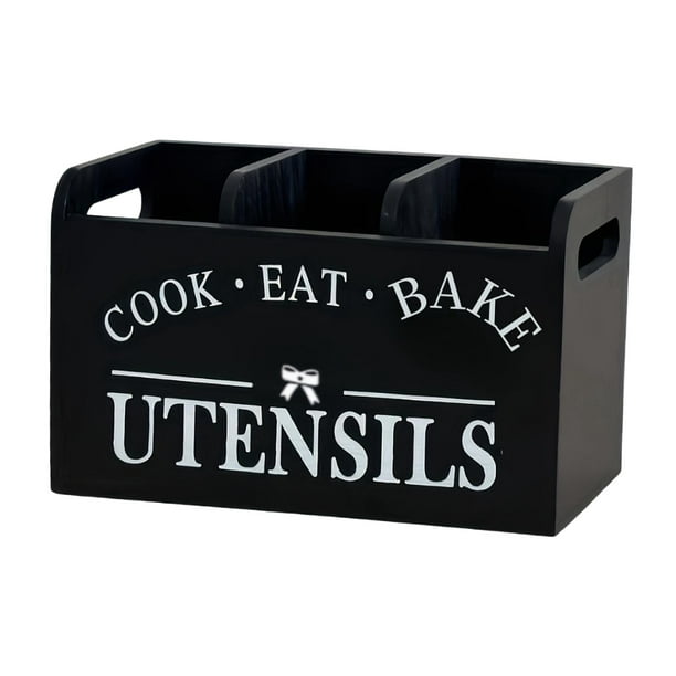 Porta utensilios para encimera de cocina, almacenamiento de utensilios de cocina con 3 compartimentos para encimera, contenedor para cubiertos.