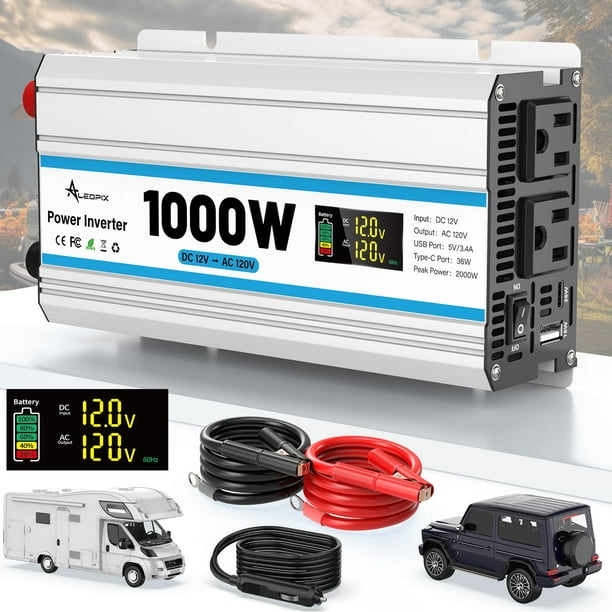 Inversor de corriente ALEOPIX 1000W 12V a 110V/120V para vehículo