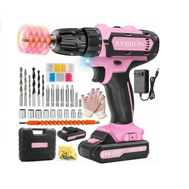 Imagen destacada 0 de Taladro Electrico Inalambrico,kit Taladro Eléctrico Rosa 3e1 Rybro 21v, 0 de 5