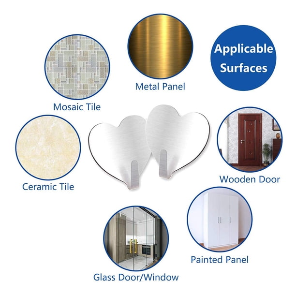 Ganchos adhesivos en forma de corazón, 10 piezas de ganchos adhesivos sin costuras en forma de corazón, ganchos de acero inoxidable, materiales ecológicos