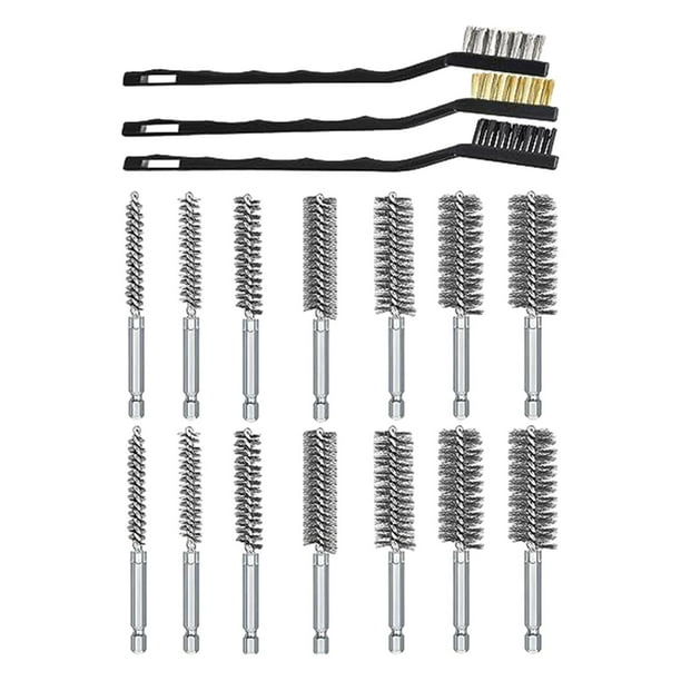 Juego de cepillos de alambre para taladro de 8-25 mm con mango y accesorios, vástago hexagonal profesional de 1/4" 17 piezas