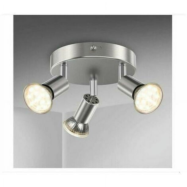 Lámpara de techo cromada para baño con 3 focos LED ajustables, clasificación IP44 para baños resistentes a la humedad