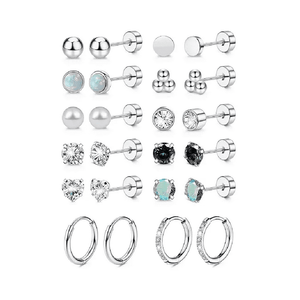 12pare Piercing Arete Oreja Cartílago Mujer Acero Inoxidable PLATA