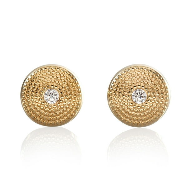 Aretes de oro 14k GIALLO Broquel Cúpula luxury gold con circonia