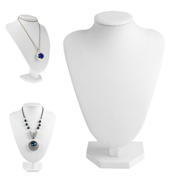 Exhibidor imitación cuero para joyas collar y bisutería en color blanco M
