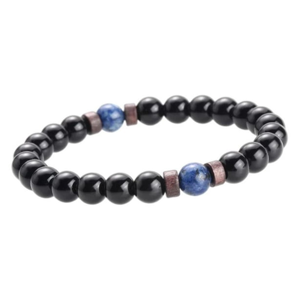 Pulsera de cuentas Yuyangstore Buda tibetano Difusor de piedra 8 mm Elástico Azul
