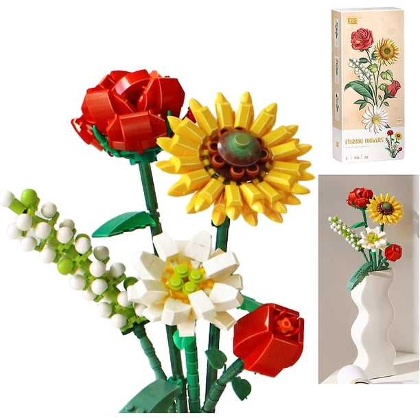 Flowers Bouquet Building Kit, Artificial Flower Blocks Set Toy For Adults, Creative Botanical Collection For Home Decor, Birthday Valentine's Day Gift