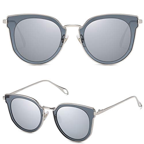 SOJOS Fashion Round Polarized Sunglasses for Women UV400 Mirrored Lens SJ1057 with Silver Frame/Grey&Silver Mirrored Lens SOJOS SOJOS