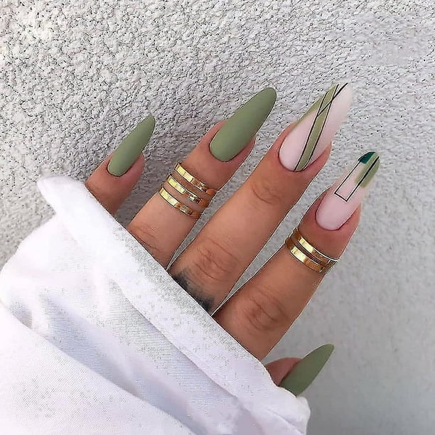 24 uñas postizas ovaladas mate, diseño geométrico medio, uñas acrílicas de cubierta completa para uso diario. Nota: sin pegamento.24 unas postizas ovaladas mate diseno geometrico medio unas acrilicas de cubierta completa para uso diario nota sin pegamento