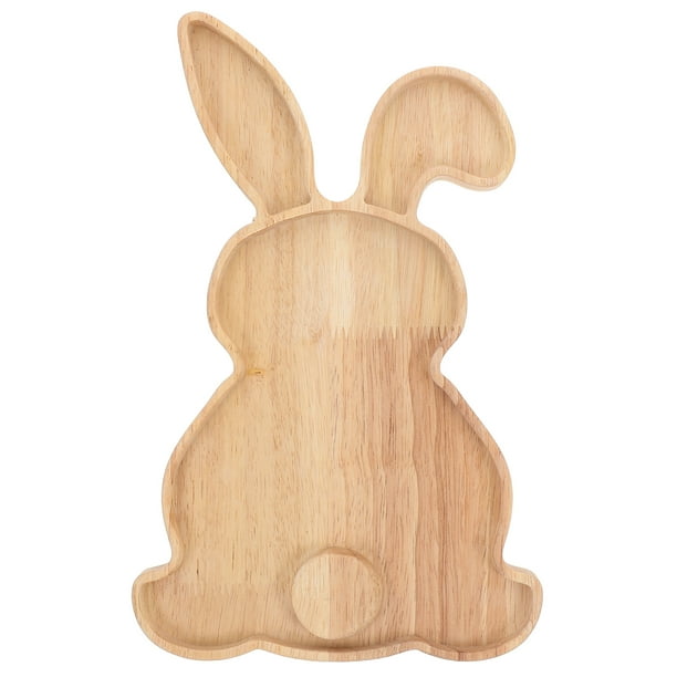 ColoMX Bandeja decorativa de madera rústica con forma de conejito de escritorio de Pascua, bandeja decorativa para servir