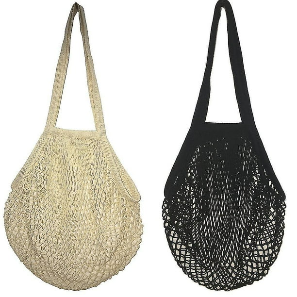 Bolsa de compras con organizador orgánico de malla de algodón lavable de 2 piezas, bolsa de malla reutilizable portátil para almacenar frutas.
