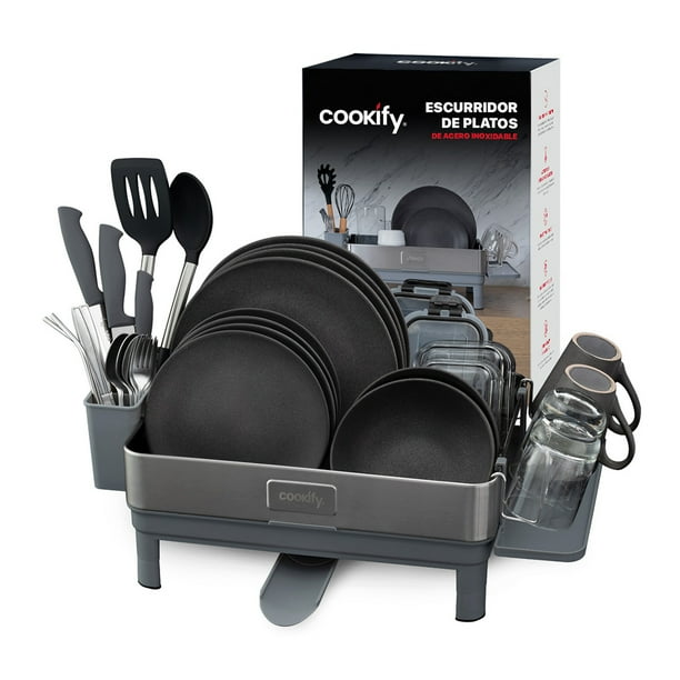 Escurridor de Trastes de Acero Inoxidable Cookify con Boquilla Giratoria 360ºescurridor de trastes de acero inoxidable cookify con boquilla giratoria 360 escurridor de trastes expandible cookify de acero inoxidable con sistema de drenaje