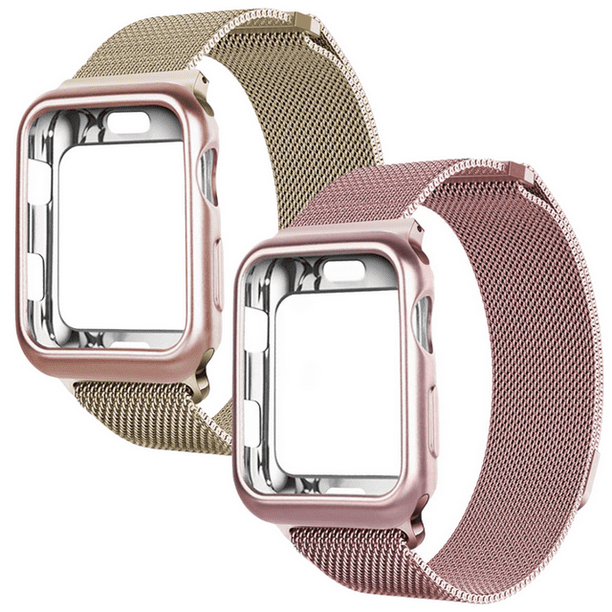 Kit de 2 Correas metálicas para apple watch de 44mm + Protector lateral de pantalla. Mamá Pulpo Milanese case lateral
