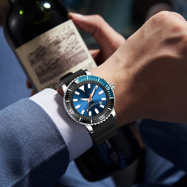 Reloj Analógico Para Hombre, Cronógrafo, Reloj De Pulsera De Lujo Con Cara Grande, Movimiento Automático, Bisel Giratorio, Parte Trasera Hueca, Resistente Al Agua Para Deportes