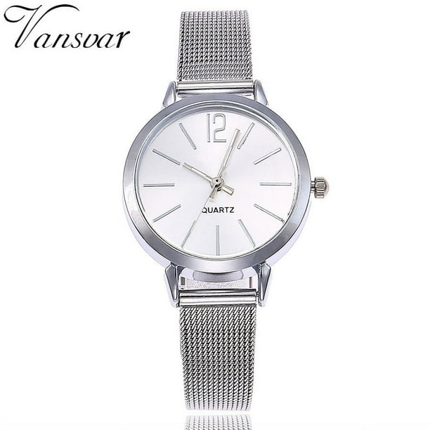 Reloj de cuarzo para mujer, relojes para mujer vansvar, reloj de pulsera analógico de cuarzo casual con correa de acero inoxidable, reloj de pulsera