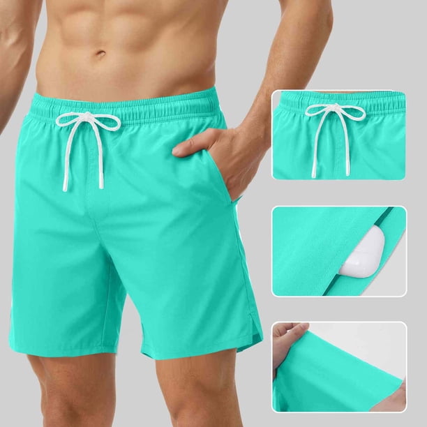 Ceisia Men's Shorts Athletics Elastic Waist Solid With Large Pockets For Camping Hiking & Sky Blue M Gift