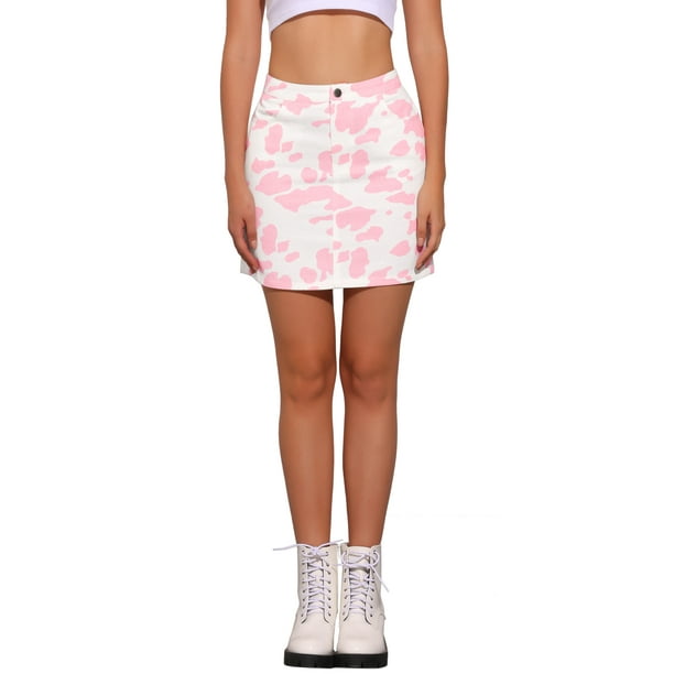 Faldas cortas casuales de vaca para mujeres Inspire Chic, de cintura alta, color rosa, talla XL