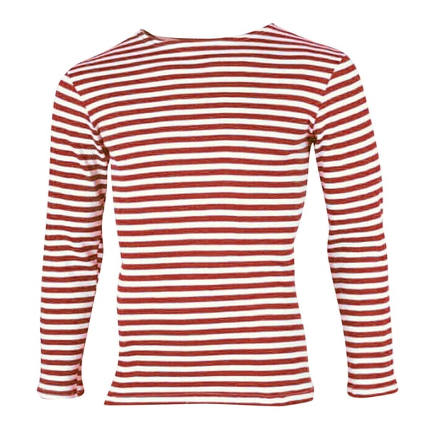 MHFRRA Camiseta Informal de Manga Larga con Cuello Redondo y Estampado a Rayas para Mujer y Hombre Rojo