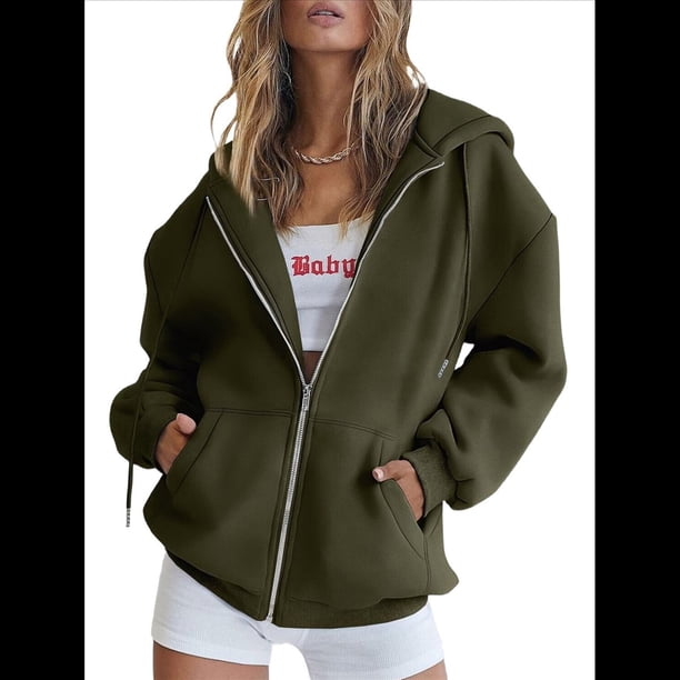 Sudaderas con Capucha y Cremallera para Mujer, Sudaderas Extragrandes, Conjuntos de Moda Escolar para Otoño, Chaquetas Informales, Ropa de Invierno Verde XL
