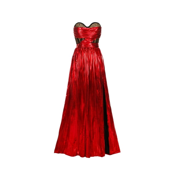 Vestido Bellabarnetten Nikalia de encaje largo sin tirantes con abertura alta