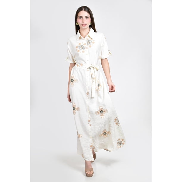 Imagen destacada 0 de Vestido camisero bordado Roman Fashion /Juvenil, 01553 (Bco /Verde) blanco CH, 0 de 5