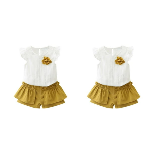 Qarigey 2 unids/set niña primavera moda algodón Top conjunto corto sin mangas chaleco pantalones Kit ropa regalo de cumpleaños Talla 9 2piezas