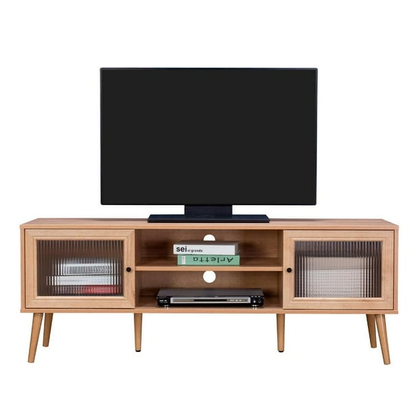 Mueble para TV Top Living con Estantes y Puertas de Vidrio Café