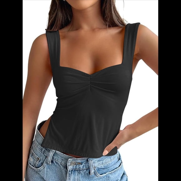 Tops Cortos para Salir de Mujer, Camisetas Sin Espalda, Ropa Básica de Verano Y2K para Adolescentes, Ropa , Negro M