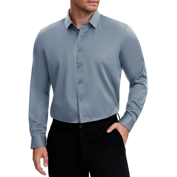CAMISAS DE VESTIR FORMAL DE MANGA LARGA CON CUELLO PUNTA PARA HOMBRE EN COLOR GRIS TAMAÑO S