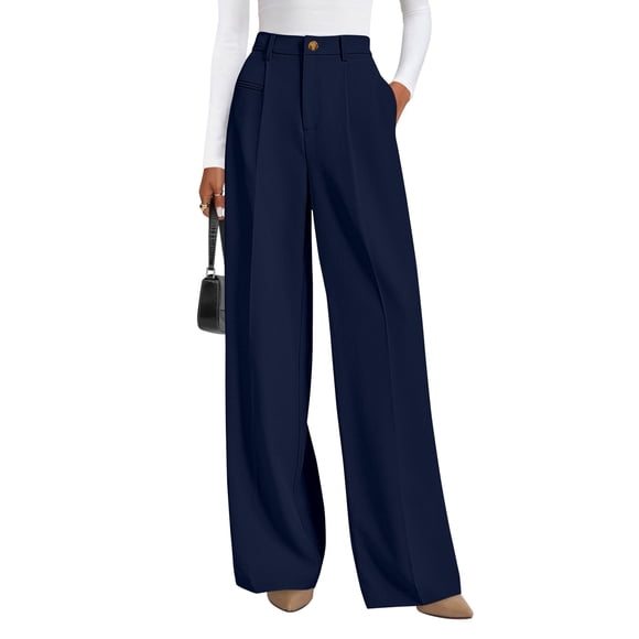 Pantalones de Mujer PRETTYGARDEN Pierna Ancha Cintura Alta Azul Marino MAvailable for Envío internacionalEnvío internacional