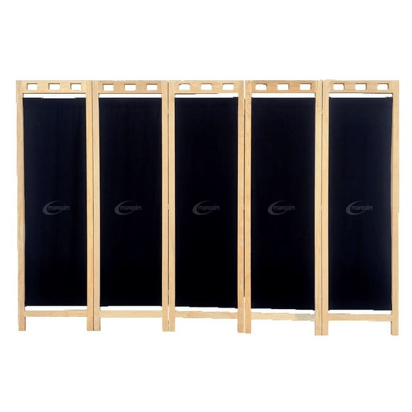 Biombo Mampara Madera DE Pino Natural 5 Paneles Negro MARDAM
