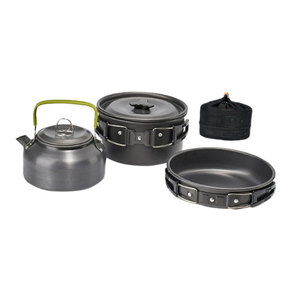 Juego de cocina para acampar de 3 piezas, juego de utensilios de cocina para acampar, olla con asa plegable y sartén NegroAvailable for Envío internacionalEnvío internacional