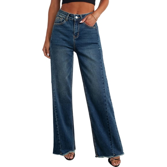 Pantalones de Mujer PRETTYGARDEN de Pierna Ancha y Cintura Alta en DenimAvailable for Envío internacionalEnvío internacional