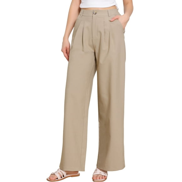 Pantalones de vestir de pierna ancha para mujer, pantalones de oficina de cintura alta elástica, pantalones palazzo M color caquiAvailable for Envío internacionalEnvío internacional