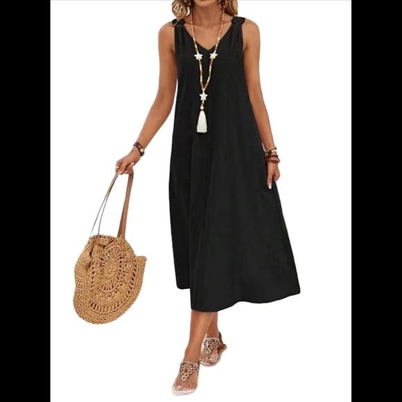 Vestidos para Mujer Verano Sin Mangas Cuello Algodón Playa Casual Vestido Negro Talla SAvailable for Envío internacionalEnvío internacional
