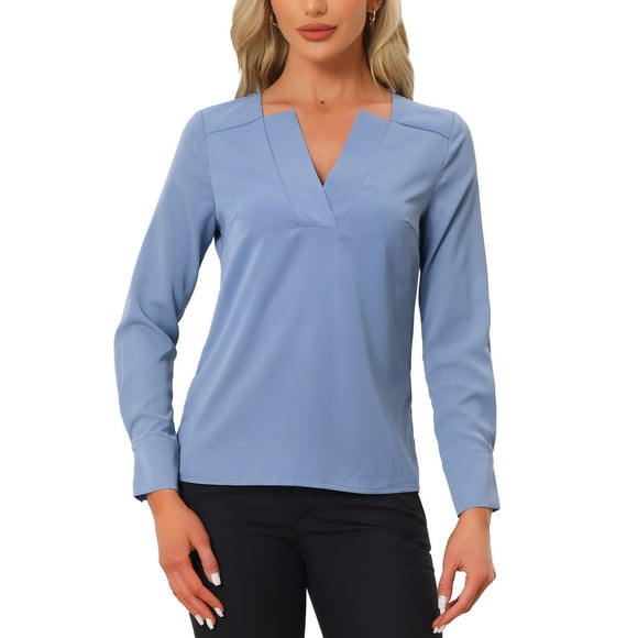 Blusa de Oficina Chic Inspire para Mujer, Blusas de Manga Larga con Cuello en V, S Azul GrisAvailable for Envío internacionalEnvío internacional